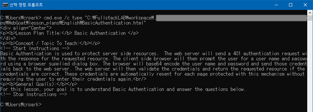 파라미터 값을 "type 현재디렉터리\files\file1.txt"로 변경