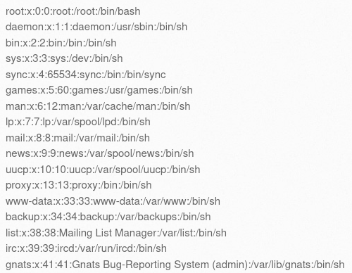 daemon:x:1:1:daemon:/usr/sbin:/bin/sh