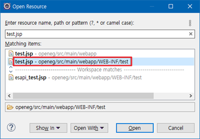- 선택창에서 선택 후 실행 버튼을 클릭하면 data 파라미터의 값으로 type 또는 dir이 서버로 전달된다.