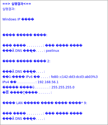 실행 결과, 네트워크 설정 정보가 출력된다.