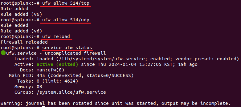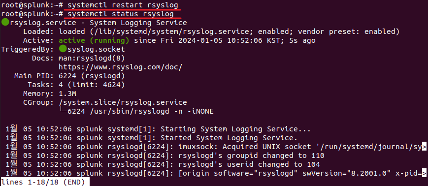 1) [SplunkServer - Ubuntu] rsyslog 서버 설치