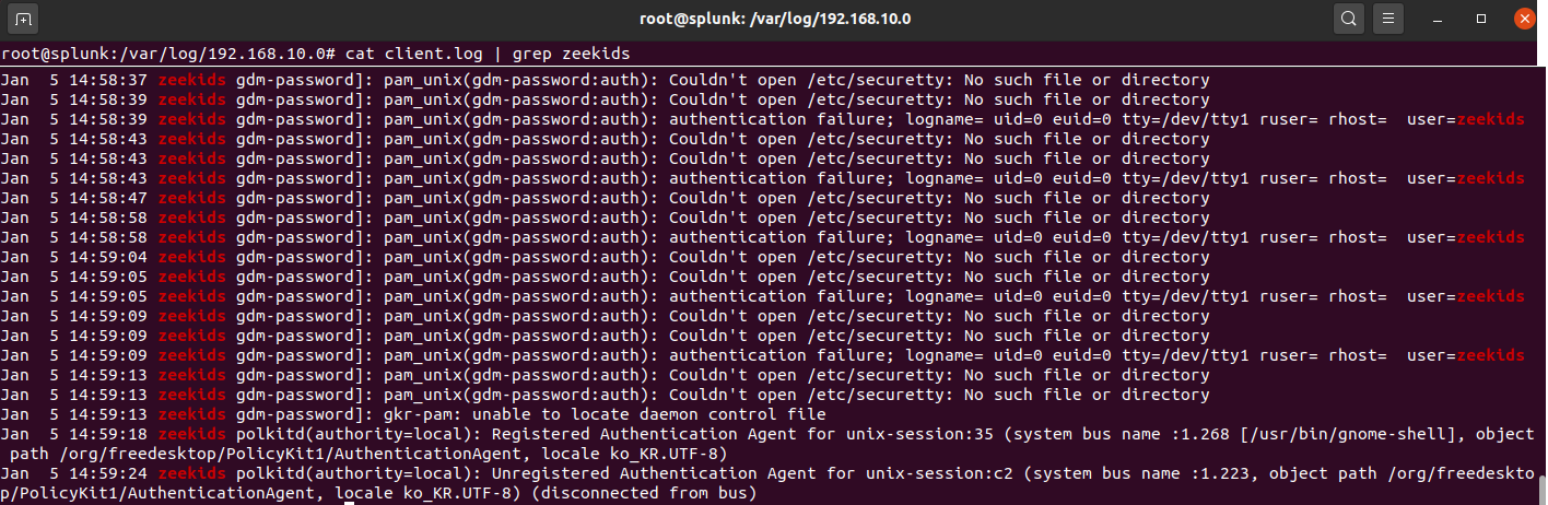 root@splunk:/var/log/192.168.10.0# cat client.log | grep zeekids