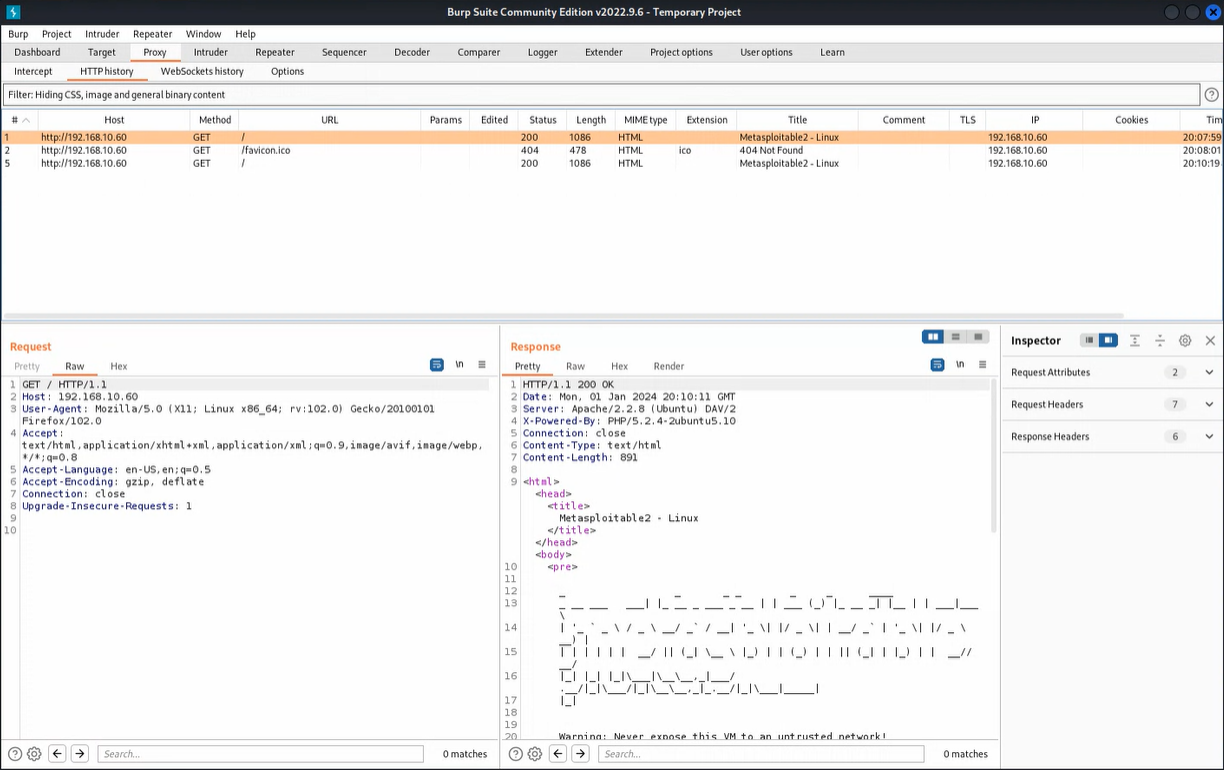 burpsuite에 기록이 남는 것 확인 - http 패킷 내용을 모두 볼 수 있다