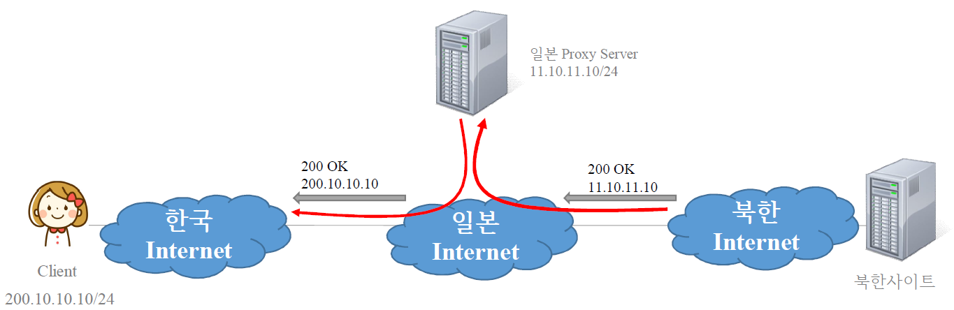 그 사이트로 접근이 허가된 B 국가의 Proxy 서버를 통해 우회 접속할 수 있다.