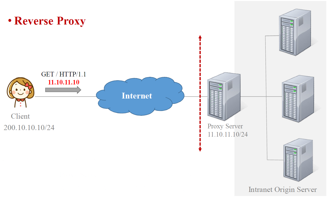 * 프록시 서버의 IP만 공개함으로써 해킹 대비 가능