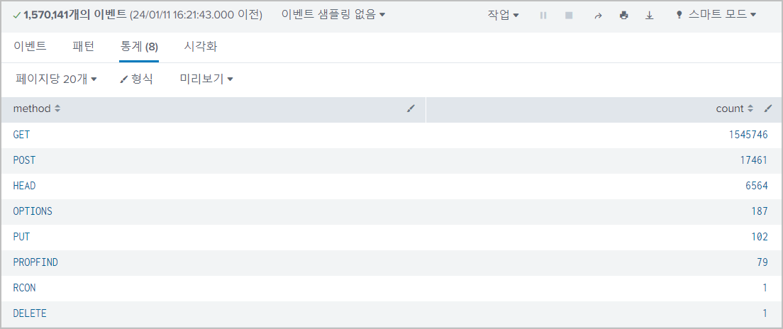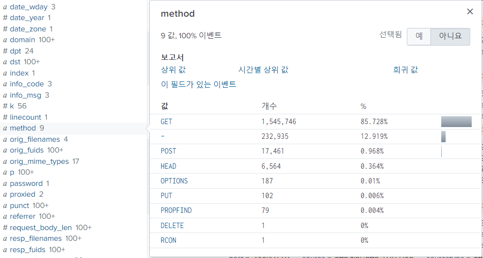 • 송신지 IP를 기준으로 options 메소드를 사용한 횟수 검색