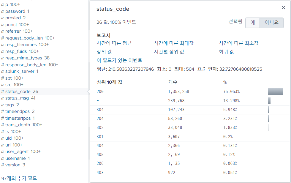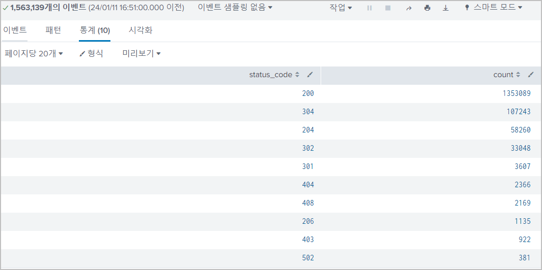 - 상태코드가 200인 = 성공한 응답 이벤트 검색