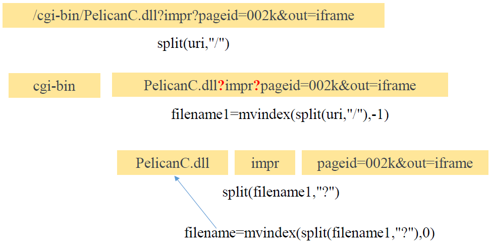 - filename1 필드가 "?"를 포함하면 filename1을 "?"로 분할해 첫 번째 요소를 filename 필드에 할당