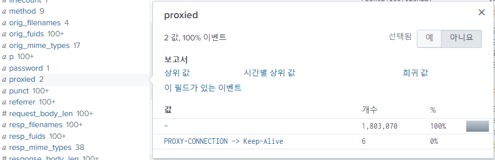 - Client 자체 proxy를 통해 접속한 경우 또는 connect 메소드를 사용한 이벤트 검색