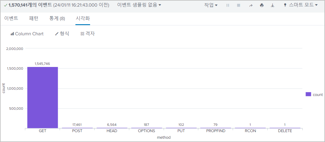 • 송신지 IP를 기준으로 접속에 사용한 메소드의 종류별 사용 횟수 검색