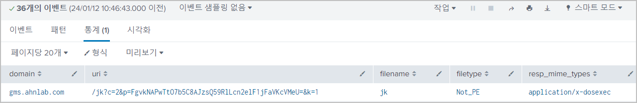 - mime type(content type)이 dos 실행파일인 이벤트를 검색한다