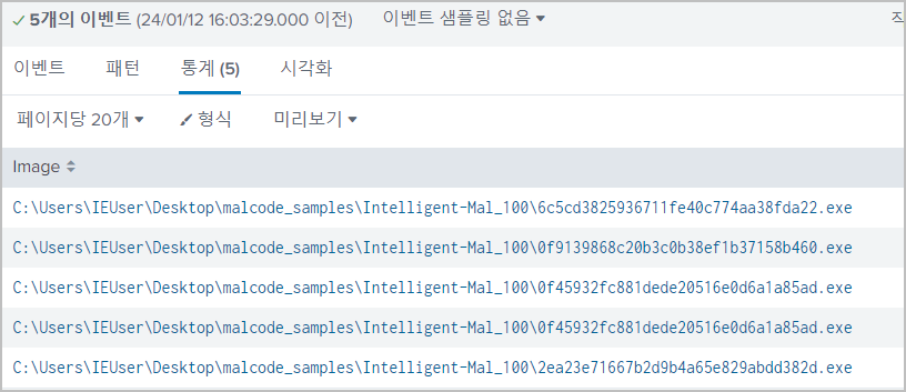 - 악성 코드가 사용자 PC에 다운로드되고 실행이 되었다면 프로세스가 생성되므로 Sysmon 이벤트 코드 1에서 해당 이벤트를 찾을 수 있음