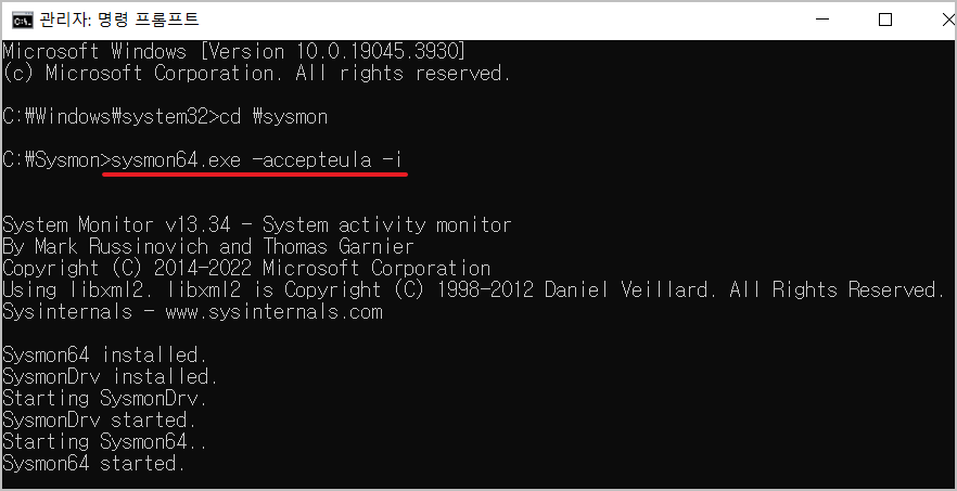 sysmon64.exe -accepteula –i