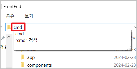 • 해당 프로젝트 폴더에서 터미널 창 열기